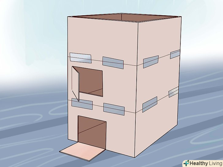Підберіть іграшки, з якими кролик зможе грати в вашу відсутність. незважаючи на те, що спільні ігри з кроликом досить забавні, вам також необхідно подбати про те, щоб кролик не нудьгував і під час вашої відсутності. Так кролик не буде піддаватися зайвому стресу, поки вас немає поруч, і не буде через це починати кусатися, гризти предмети і проявляти інші види деструктивної поведінки.- Багато власників кроликів рекомендують будувати для кролика замок з картонних коробок. Для цього буде потрібно зібрати старі картонні коробки, нагромадити їх один на одного і виконати отвори для переходів між коробками, а також входи. Особливо сильно картонні замки подобаються тим кроликам, які люблять гризти предмети і самі по собі досить цікаві. Якщо ви залишаєте кролика в кімнаті, а не в клітці, коли йдете з дому, або якщо ваш кролик живе в загоні, то замок для вас може стати непоганим варіантом. Якщо ж кролик днем залишається в клітці, то організувати для нього замок всередині неї буде важко. [6]