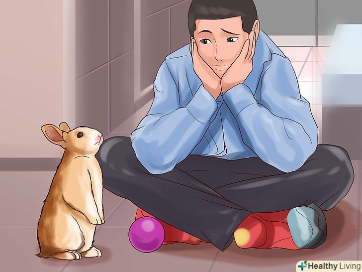 Будьте терплячими. Кролики можуть бути полохливими, особливо в перший час. Ви не повинні нав'язувати ігри і певні іграшки, якщо кролик не проявляє до них інтерес. Дайте кролику стільки часу, скільки йому необхідно, щоб адаптуватися..- Не грайте з кроликом в грубі ігри, в які іноді можна грати з собаками і кішками. Кролики від природи полохливі, і ваш вихованець легко може почати вас боятися. [8]