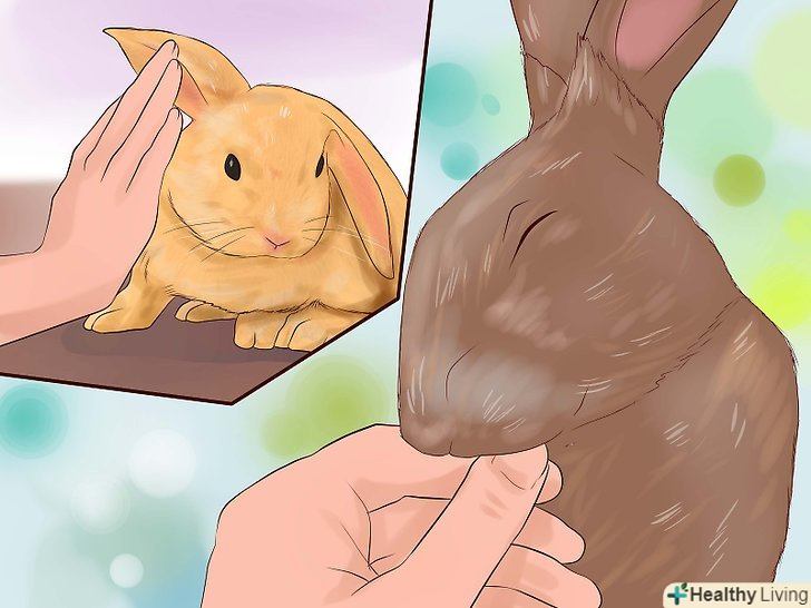 - Гладьте кролика, одночасно даючи йому при цьому позитивне заохочення у вигляді доброзичливих голосових сигналів або частувань. Вам необхідно зробити так, щоб кролик почав асоціювати ваші дотики з почуттям безпеки і задоволення. [10]
