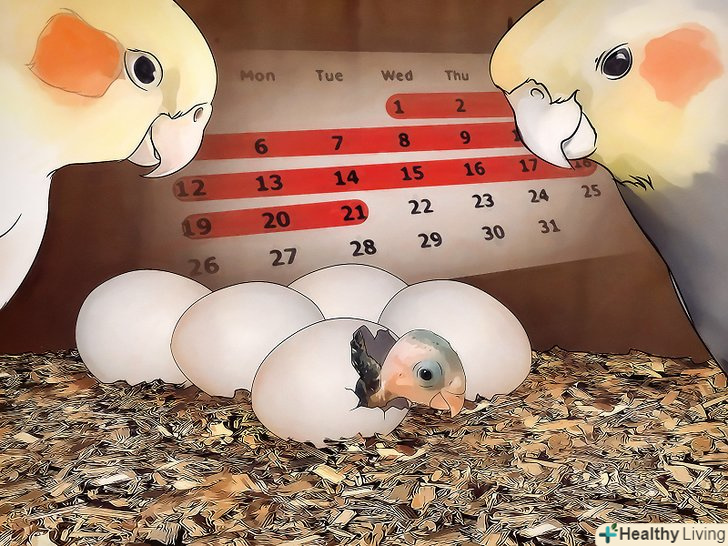 Дозвольте батькам висидіти яйця. Самка і самець будуть по черзі висиджувати яйця, але б Про більшу частину часу на яйцях буде сидіти самка. Можливо, ви помітите, що батьки вискубують частину пір'я, щоб оголити невелику ділянку шкіри. Це так зване "сідничне пляма" -Птахи надходять так через те, що оголена шкіра краще передає тепло яйцям.- Пташенята вилупляться приблизно через три тижні, хоча самка приступає до висиджування яєць приблизно через тиждень після того, як відкладе їх. [14] приблизно кожні 48 годин самка буде відкладати по одному яйцю, поки не відкладе від 2 до 8 яєць. [15]
