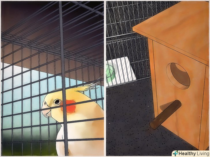 Помістіть пару корелл разом у велику клітку. для розмноження птахам буде потрібно достатньо місця (навіть більше, ніж після того, як вилупиться потомство). Простежте, щоб клітина була не менше 2 х 1 х 1 метр. [8] можна помістити пару в одну клітку за кілька тижнів до того, як ви поставите в неї шпаківню, щоб Корели познайомилися один з одним і були готові до спаровування. [9]- Виберіть для клітки Тихе місце в будинку, щоб птахи могли усамітнитися і спокійно спаритися, висидіти яйця і виростити пташенят.