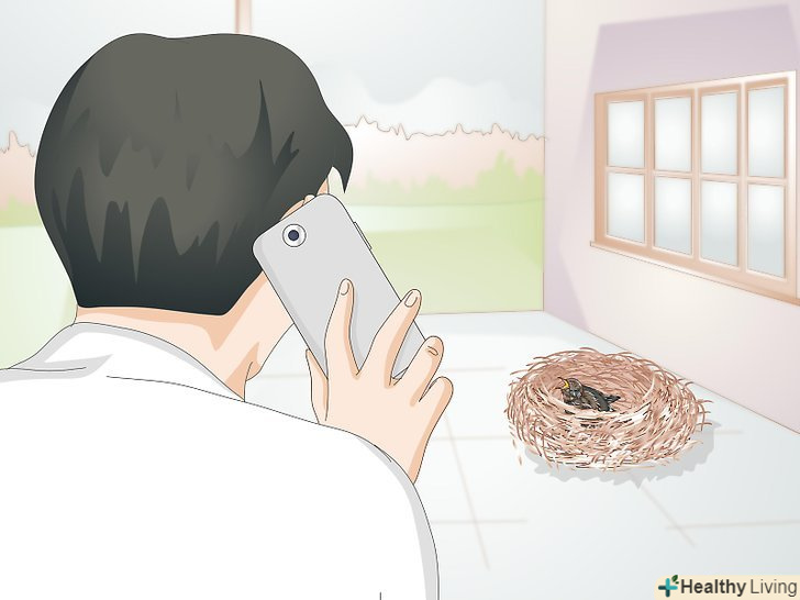 Зв'яжіться з центром реабілітації диких тварин. у центрах реабілітації працівники володіють достатніми професійними знаннями і навичками з виходжування пташенят. Перевірити наявність подібних реабілітаційних центрів у Вашому регіоні ви зможете, здійснивши пошук в інтернеті, або можна спробувати зателефонувати до ветеринарної клініки або притулок для тварин, так як там можуть знати контактні дані найближчого реабілітаційного центру. [15]- Запитайте поради щодо того, як нагодувати, напоїти і зігріти пташеня. Не поспішайте, будьте терплячі при задаванні питань, також попросіть додаткових порад, запитавши наступне: "чи є щось ще, що мені слід знати (або чого слід побоюватися)?»