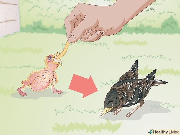 Продовжуйте годувати пташеня до тих пір, поки він не перетвориться в оперившегося слетка. птах не зможе вижити в природі, поки у неї остаточно не сформуються крила і вона не почне літати. Тільки після цього ви можете спробувати відпустити її на волю. [39]