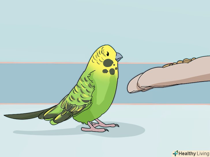 Заохочуйте папугу ласощами і кормом. годування папуги з рук — один з можливих способів зміцнити з ним взаємини, але ви також можете використовувати корм і ласощі для заохочення належної поведінки. Наприклад, якщо вам в перший раз вдалося успішно посадити папугу на руку і навіть вийняти його з клітки (читайте про це далі), можна пригостити птицю кормом або ласощами для заохочення подібної поведінки. Коли птах зрозуміє принцип дії системи заохочення, вона навчиться робити те, що ви від неї хочете, натомість на їжу і ласощі.