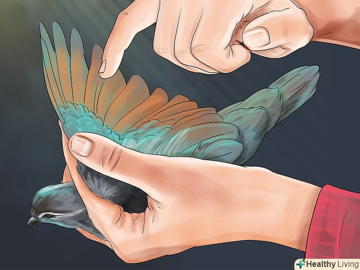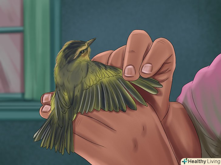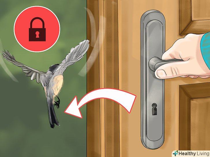 Дійте швидко, якщо птах випурхне. у рідкісних випадках під час обрізки крил птах може вирватися з рук і випурхнути на вулицю. Щоб уникнути цього, працюйте в ізольованій кімнаті з щільно закритими вікнами і дверима. Якщо ваша птах все ж полетіла, дійте швидко. [13] Дійте швидко, якщо птах випурхне. у рідкісних випадках під час обрізки крил птах може вирватися з рук і випурхнути на вулицю. Щоб уникнути цього, працюйте в ізольованій кімнаті з щільно закритими вікнами і дверима. Якщо ваша птах все ж полетіла, дійте швидко. [13]- Негайно винесіть пташину клітку на вулицю. Відкрийте її дверцята і наповніть годівниці і поїлку.