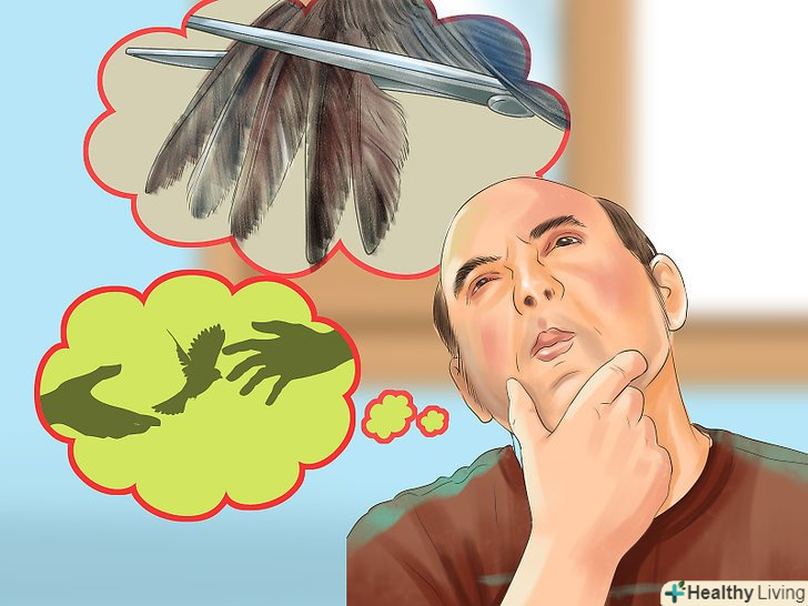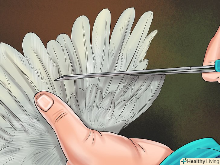 Слідкуйте за станом крил птиці, щоб не упустити час чергової обрізки. Процедура обрізки крил не має стандартних термінів її проведення. Всі птахи різні. Просто уважно стежте за станом крил вихованця, щоб обрізати їх знову, коли це буде потрібно. Запам'ятайте, що відлетів з дому домашній вихованець на вулиці піддається величезному ризику найрізноманітніших нещасних випадків. [11] Слідкуйте за станом крил птиці, щоб не упустити час чергової обрізки. Процедура обрізки крил не має стандартних термінів її проведення. Всі птахи різні. Просто уважно стежте за станом крил вихованця, щоб обрізати їх знову, коли це буде потрібно. Запам'ятайте, що відлетів з дому домашній вихованець на вулиці піддається величезному ризику найрізноманітніших нещасних випадків. [11]- Приблизно один раз на місяць перевіряйте, наскільки сильно відросли у птиці пір'я.