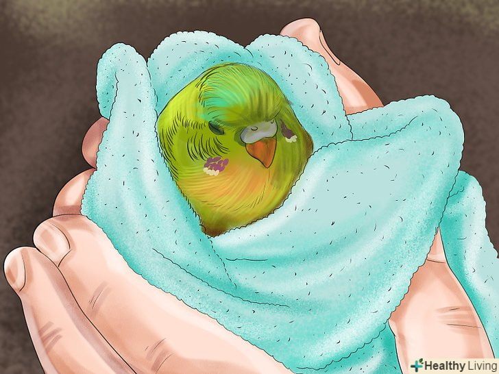 Обездвіжьте птицю. птах буде протистояти обрізанню крил. Вам буде необхідно загорнути птицю в рушник, щоб забезпечити її нерухомість під час виконання процедури. [4] Обездвіжьте птицю. птах буде протистояти обрізанню крил. Вам буде необхідно загорнути птицю в рушник, щоб забезпечити її нерухомість під час виконання процедури. [4]- Рушник буде являти собою аналог прихватки. Не стискайте занадто сильно груди птиці. У птахів немає діафрагми, тому будь-який тиск на грудну клітку може привести до зупинки дихання.