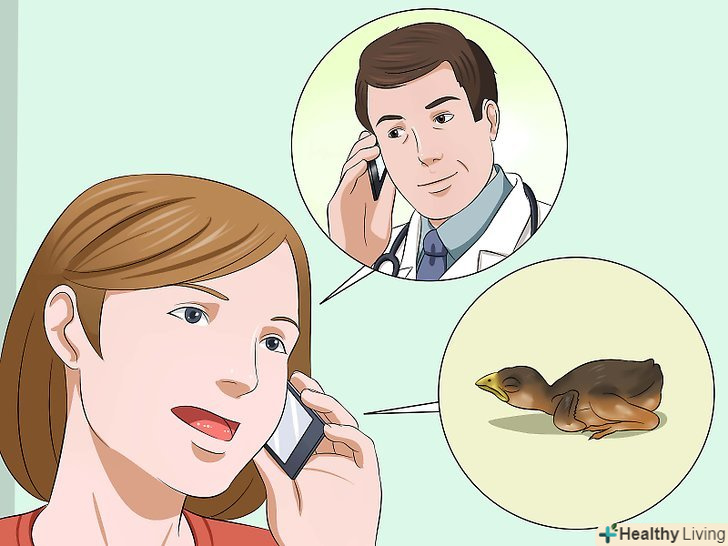 З'ясуйте, чи потрібна пташеняті допомога фахівця. якщо батьки не повернуться протягом 1-2 годин або якщо ви точно знаєте, що мама пташеня померла, пташеня потрібно буде передати в реабілітаційний центр для диких птахів. Пташеняті також буде потрібна допомога, якщо він травмований або виглядає хворим. [47]- Не затягуйте зі зверненням в реабілітаційний центр. Чим раніше ви привезете птицю, тим більше у неї буде шансів поправитися. [48]