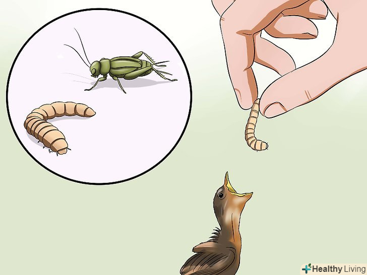 Купуйте борошняних черв'яків і / або цвіркунів. вони продаються в зоомагазинах і магазинах для мисливців. [17] перш ніж дати пташеняті черв'яків, роздушіть їх голови. [18]- Пошукайте магазини, де можна купити живих цвіркунів. [19]