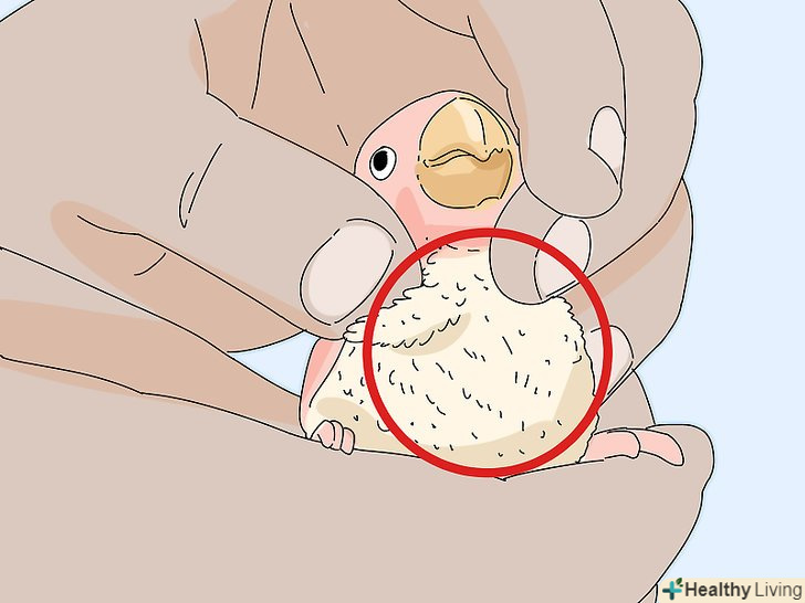 Перевірте зоб папужки на наявність опуклості. Зоб-це верхня частина шлунка птиці, яка роздувається, коли він їсть. Перестаньте годувати пташеня, коли відчуєте, як він вздуется.- Годуйте пташеня сумішшю через кожні 3-4 години. Кожен раз годуйте його до тих пір, поки його зоб не збільшиться, але не більше того.