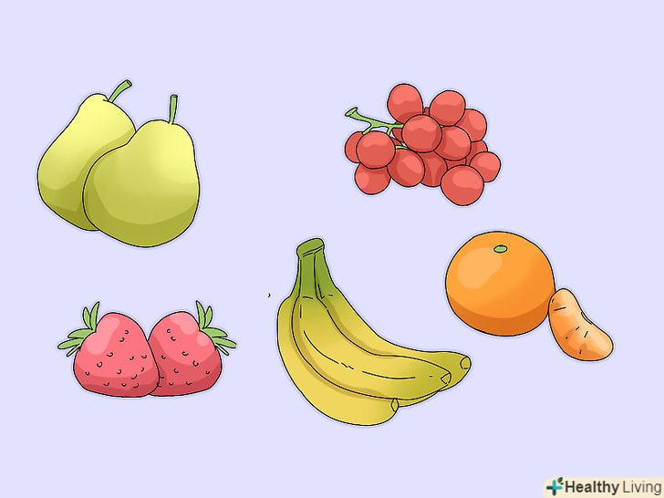 Годуйте нерозлучників свіжими фруктами. для цих папужок дуже корисні такі фрукти, як груша, банани, виноград, полуниця, малина, яблука, апельсини, мандарини, киї, інжир, кавун, вишня без кісточок і плоди шипшини. [3]- Сушені фрукти можна давати тільки за умови, що в них немає сульфітів.