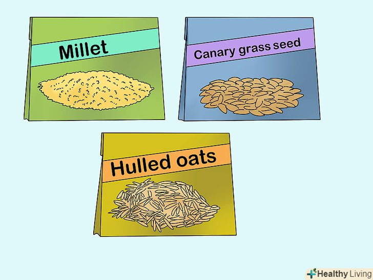 В якості частування купите для папужок якісну зернову суміш. у зерновій суміші повинен бути великий вибір зернових культур, таких як пшоно, насіння канареечника, лущений овес, олійний нуг, насіння льону, насіння соняшнику, насіння сафлору і ріпак. До складу зернової суміші також може входити соя, жито, канаркове насіння, цільнозерновий коричневий рис, насіння фенхелю, мак і насіння кунжуту. [4]- Оскільки для нерозлучників в ЗЕРНОВИХ сумішах міститься недостатньо поживних речовин, їх слід давати потроху, як частування. Насіння не повинні бути єдиним джерелом живлення для птахів.