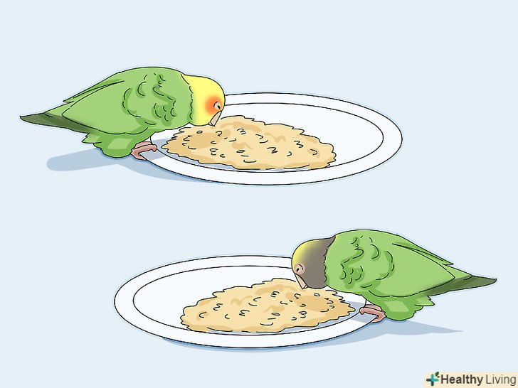 Годуйте пташенят нерозлучників з рук, поки їм не виповниться 10 місяців. новонароджених і дитинчат нерозлучників корисно годувати з рук. На це йде чимало часу, але це ідеальний спосіб, якщо ви ростите пташеня з раннього віку і хочете, щоб він був здоровим. [11]- Нерозлучники, яких годували з рук, виростають більш здоровими і щасливими, ніж папужки, яких годували з мисок.