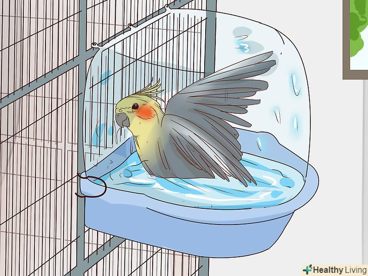 Привчіть кореллу купатися. Корели - досить пилові Птахи, яким слід купатися кожні кілька днів. Наповніть пульверизатор чистою трохи теплою водою і в перший час зрошуйте з нього вихованця всього один-два рази за процедуру, щоб дати звикнути. Незабаром папуга вже буде сам наближатися до вас, як тільки побачить пульверизатор. Корели люблять купатися і навіть розкривають під пульверизатором свої крила і повертаються всім тілом до тих пір, поки остаточно не намокнуть, а потім обтрушуються від надлишків води. [16]- Запам'ятайте, що папугу не слід купати ночами і тоді, коли у вас вдома занадто холодно.