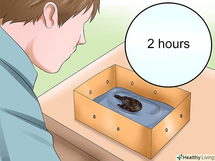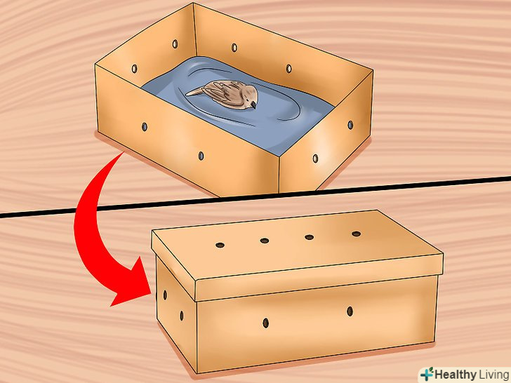 Посадіть птицю в коробку і закрийте кришкою. простежте за тим, щоб в коробці обов'язково були отвори для вентиляції. Поставте коробку в тепле захищене місце (подалі від прямого сонячного світла). Тримайте її далеко від можливих хижаків, включаючи кішок. [7]