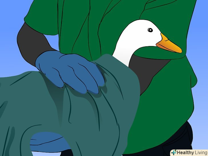 Вам потрібно правильно доставити рідину в організм. спочатку за допомогою шприца візьміть 50 мл рідини, потім приєднайте шприц до трубки. Підтримуйте голову птиці так, щоб голова і шия знаходилися на одному рівні. Це повинно бути легко, тому що птах не може рухатися.- Капніть трохи вазеліну на кінець трубки. Підставте трубку до дзьоба і потихеньку засовуйте її ближче до лівої сторони, тому що стравохід лежить уздовж лівого боку шиї.