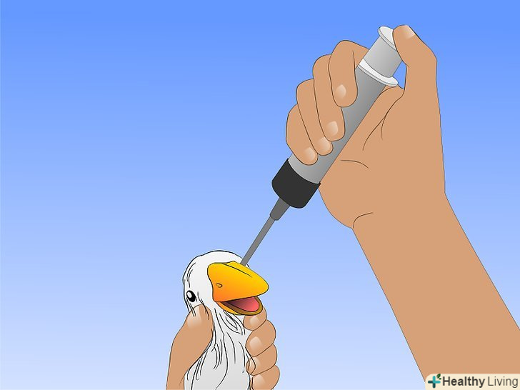 - Якщо птах не в змозі пити, спробуйте годувати її за допомогою піпетки. Однак, якщо птах не може ковтати, і рідина просто виходить з дзьоба, можна використовувати трубку, щоб рідина точно потрапила в організм.