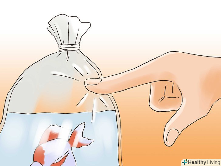 Відкрийте контейнер або паперовий пакет і обережно вийміть прозорий пакет з рибкою. поки не відкривайте його. Не штовхайте пакет або контейнер, так як ви можете завдати травму рибі або піддати її зайвому стресу.