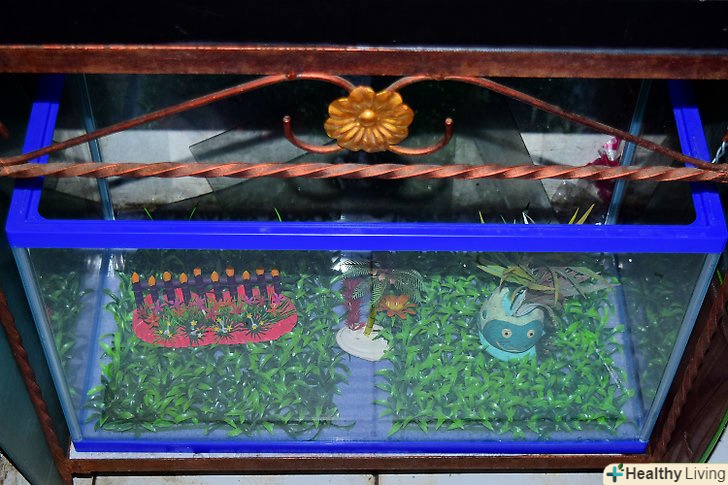 Акуратно розміщуйте прилади і прикраси. всі додані елементи треба розташовувати уздовж стін, щоб черепаха могла вільно плавати. Ви також можете розташувати обладнання під сушею, щоб його заховати.- Якщо ви хочете поставити щось в центр акваріума, вибирайте рослини і зарості. Це не вплине на можливість черепахи плавати. Встановлюйте високі і жорсткі прикраси тільки в кутах акваріума.