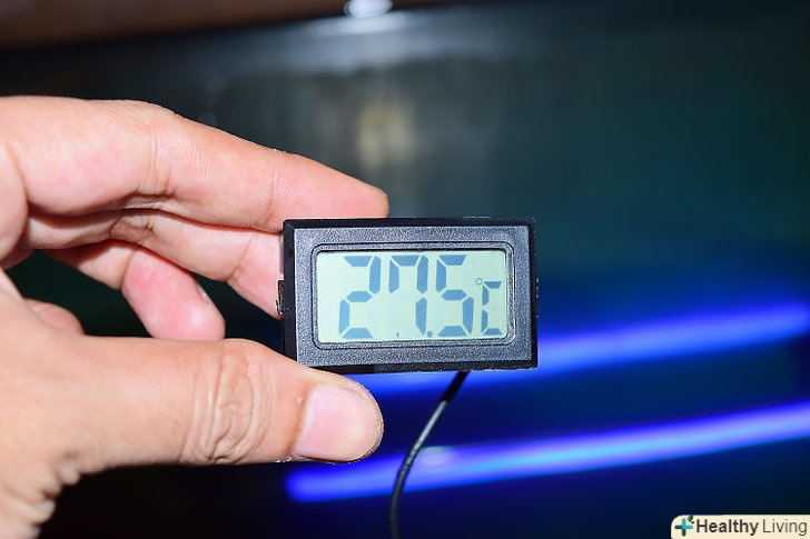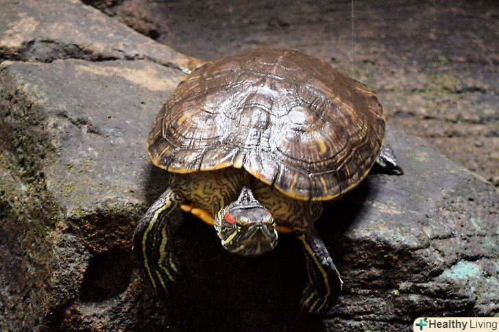 Придбайте необхідні прилади для моніторингу середовища. умови середовища можуть поступово змінюватися з часом, тому вам необхідно регулярно стежити за ними і підтримувати правильні умови середовища, щоб черепаха була здоровою.- Використовуйте термометри для вимірювання температури води і місця для того, щоб погрітися. Більшість черепах віддають перевагу температурі води близько 78 градусів Фаренгейта (близько 25 градусів Цельсія). Температура на суші повинна бути між 80 і 85 градусами Фаренгейта (27-29 градусів Цельсія). [4]