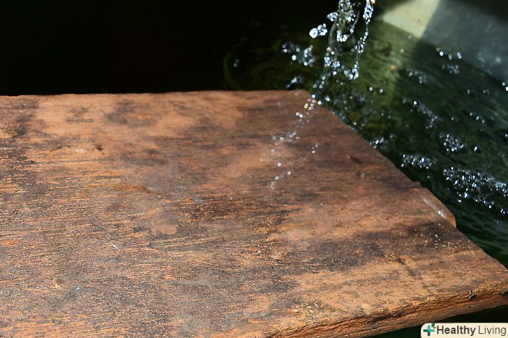 Якщо потрібно, зробіть похилу площину від суші до води. Черепахам потрібен спосіб вилазіння на сушу. В ідеалі, сама по собі суша повинна повільно спускатися до води. Якщо у вас так не виходить, Ви повинні будете встановити спеціальну похилу площину.- Сама по собі рампа повинна бути дуже проста. Наприклад, до суші С можна прикріпити вирізи скошеного колоди, так щоб інша їх сторона опускалася в воду. Таким же чином можна використовувати шматок товстого пластику.