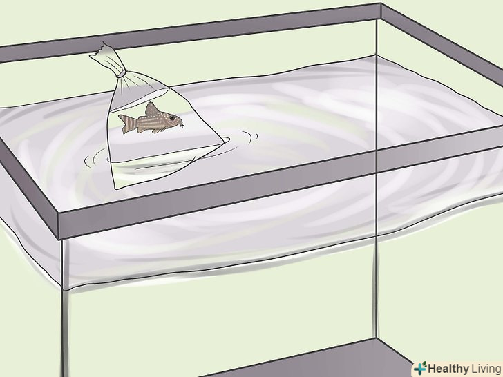 Акліматизація рибок.- Вимкніть світло в акваріумі і покладіть пакет з рибкою на поверхню води не відкриваючи його.