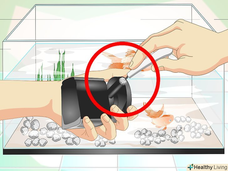 Слідкуйте за чистотою фільтра. необхідно підтримувати фільтр в робочому стані. Фільтр допомагає підтримувати чистоту акваріумної води і робить її придатною для життя, тому необхідно стежити за ним. Несправність фільтра може викликати забруднення води і навіть загибель рибок. Вивчіть інструкцію з використання фільтра, щоб знати, як доглядати за ним. [11]- Фільтри всіх видів слід перевіряти і при необхідності міняти раз на місяць. [12] перевіряйте фільтр щотижня, щоб вчасно помітити можливе засмічення і скупчення бруду. У міру необхідності очищайте або міняйте фільтр.
