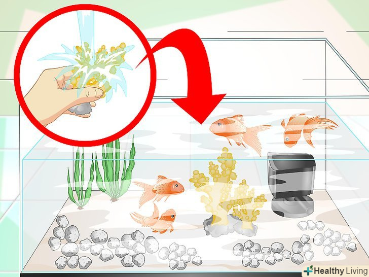 Додайте у воду корисні бактерії. тим самим ви поліпшите природні процеси, які протікають в акваріумі. Корисні бактерії можна додати в акваріум двома способами. Можна придбати пачку з бактеріями або грунт для акваріума з вже знаходяться на ньому бактеріями в зоомагазині. Можна також перенести зі старого акваріума в новий різні предмети (гальку, камені, дерев'яні предмети або прокладку фільтра), на яких вже є корисні бактерії. [3]