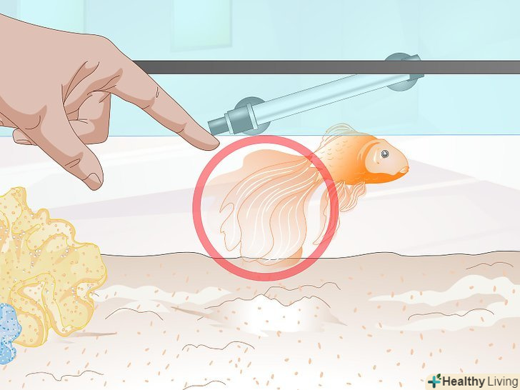 Подивіться на форму хвостового плавця. огляньте хвостовий плавець риби. У більшості звичайних різновидів золотих рибок (не вуалевих форм) по хвосту можна визначити вік. У молодої рибки він округлий, а у дорослої — схожий на гостру вилку, при цьому гострі кінці плавця проглядаються досить чітко. [7]- У золотих рибок з вуалевими плавниками хвости не володіють якими-небудь віковими метаморфозами. Це стосується вуалехвостов і віялохвостів. У них хвіст з віком не змінює свою форму, а просто стає довшим. У дорослого віялохвоста хвостовий плавець може вирости в довжину до 5 см. [8]