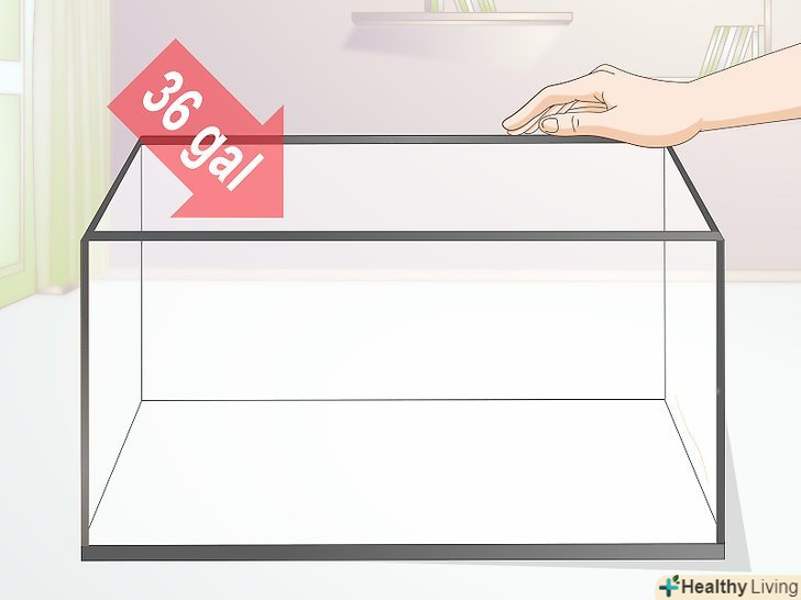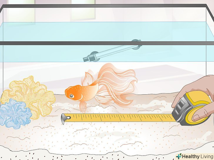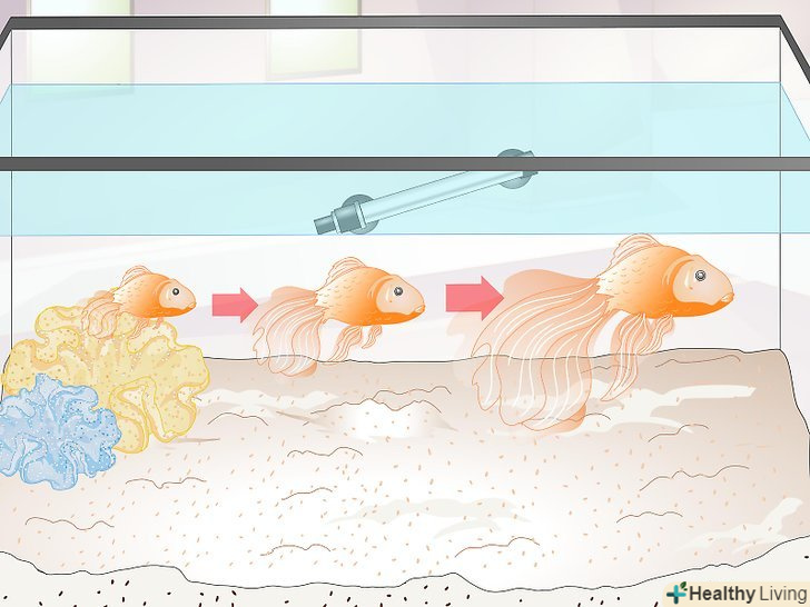 Забезпечте рибу досить просторим акваріумом. зростання Золотої рибки може зупинитися, якщо вона буде змушена жити в невідповідному акваріумі. А це означає, що риба може так і не досягти статевої зрілості, а не тільки свого повного розміру. Але не настільки шкідливі малі розміри акваріума, наскільки висока концентрація продуктів життєдіяльності риби, що накопичується в невеликій ємності. Знижений вміст кисню в маленьких акваріумах також може негативно позначитися на зростанні риби. [21]- Одну звичайну золоту рибку рекомендується тримати в ємності об'ємом не менше 180 л. на будь-яку додаткову особину слід додати ще по 50 л. декоративну золоту рибку рекомендується тримати в акваріумі На 135 л і на будь-яку додаткову особину додавати ще по 45 л. [22]