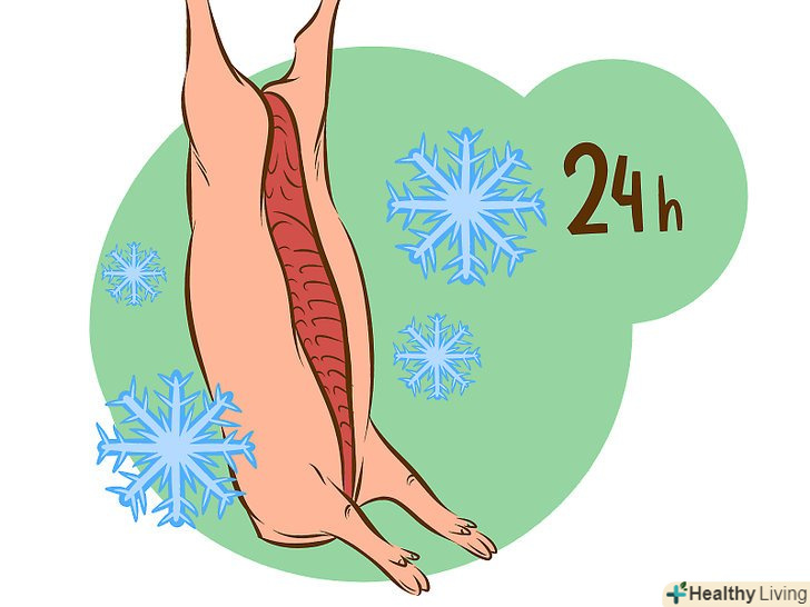 - Якщо у вас немає необхідного простору або можливості дати м'ясу полежати, вам варто обробити тушу на кілька шматків, здатних вміститися в прохолодне місце. Якщо проблема саме у відсутності простору, то використовуйте ножівку або лісопильню для розрізання туші навпіл уздовж хребтини і тазової кістки. У будь-якому випадку це буде наступний крок. А такий спосіб можна застосовувати всякий раз, коли він зручний для зберігання.