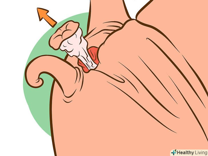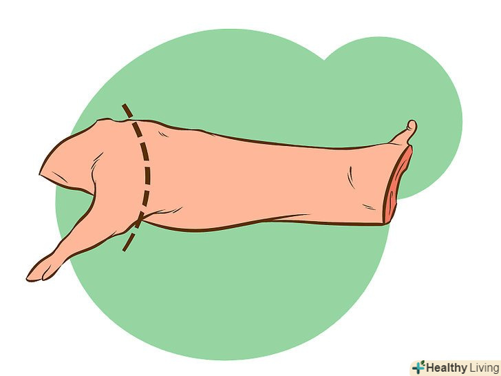 Виріжте задній прохід і видаліть. щоб почати вирізання внутрішніх органів, зробіть круговий надріз в області заднього проходу (і статевого органу) глибиною в 1-2 дюйма. Зробіть розріз на 2 дюйми більше, ніж діаметр ануса, щоб не проткнути товсту кишку. Візьміть за хвіст і акуратно потягніть, потім використовуйте гумку або кабельну стяжку і защипніть все. Це закриває доступ всередину і дає можливість витягнути кишку на іншу сторону при розтині грудини.- Деякі м'ясники спочатку видаляють субпродукти і кишечник, але краще вжити заходів обережності, так як ця частина тіла тварини заселена бактеріями і може перенести їх на саме м'ясо.