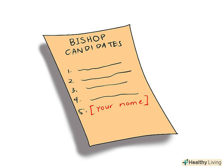 Отримайте схвалення зборів єпископів. якщо ваше ім'я буде вибрано, призначений єпископ вашої країни, також відомий як Нунцій, проведе інтерв'ю і представить на суд колегії. Якщо колегія єпископів схвалить Вашу кандидатуру, і Папа не накладе вето, то ви станете єпископом.