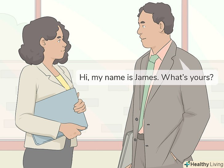 Представляйтеся по імені при першому знайомстві з людиною. Якщо на заході ви зустрінете людину, яку ніколи раніше не бачили, Представтеся на ім'я і запитайте, як його звуть. Коли співрозмовник вимовить своє ім'я, повторіть його, щоб з більшою ймовірністю його запам'ятати. Міцно потисніть людині руку (але не настільки міцно, щоб заподіяти йому біль). [2]- Наприклад, можна сказати: «Привіт, мене звуть Антон. А тебя?»