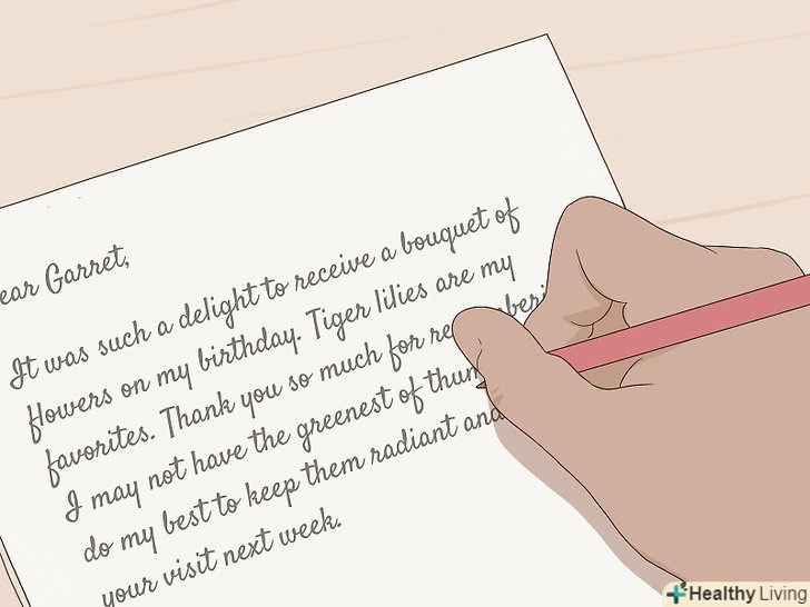 Пишіть подячні записки у відповідь на подарунки. крім особистої подяки, надішліть людині подячну записку протягом декількох днів після того, як він підніс вам подарунок або зробив щось особливе для вас. У записці повідомте, як сильно ви цінуєте його вчинок і як він вплинув на вас. В кінці перед підписом напишіть» з найкращими побажаннями «або»щиро вдячний". [8]- Наприклад, можна написати: "дорога Аліна, спасибі тобі за щоденник, який ти подарувала мені на день народження. Не можу дочекатися, щоб почати вести його і носити з собою кожен день. Я дуже ціную цей подарунок! З найкращими побажаннями, Антон"»