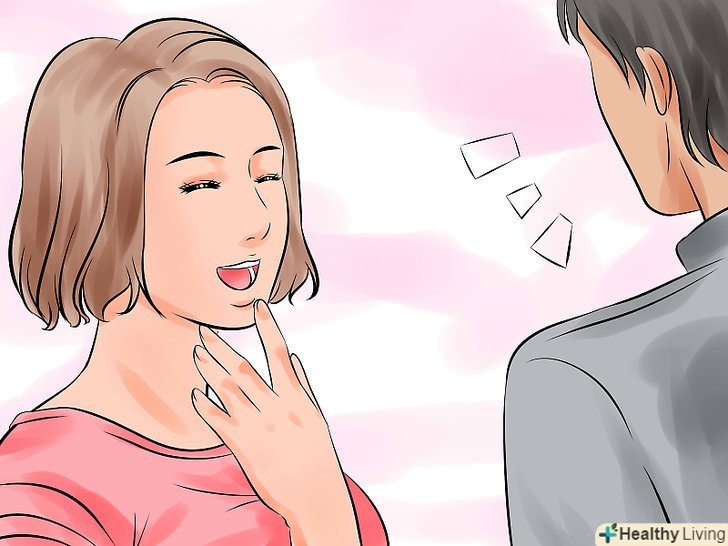 Він починає нервувати або раптово замовкає у вашій присутності? одна з ознак того, що ви подобаєтеся кокетливій людині — - це те, що з вами він не фліртує. Якщо він грайливий від природи, то він навряд чи особливо замислюється про свої дії, коли любезничает з іншими людьми. Він просто такий сам по собі. Але якщо у вашій присутності він замовкає, поводиться неспокійно і нервово, а також стає несхожим на себе, можливо, це тому, що він починає дуже уважно стежити за своїми діями і все ретельно обмірковує. [1]- Поспостерігайте за його поведінкою в компанії людей, а потім Підійдіть і привітайтеся. Зверніть увагу, чи зміниться його поведінка (можливо, він стихне, перестане дуріти або стане небагатослівним, але при цьому не буде зводити з вас очей).