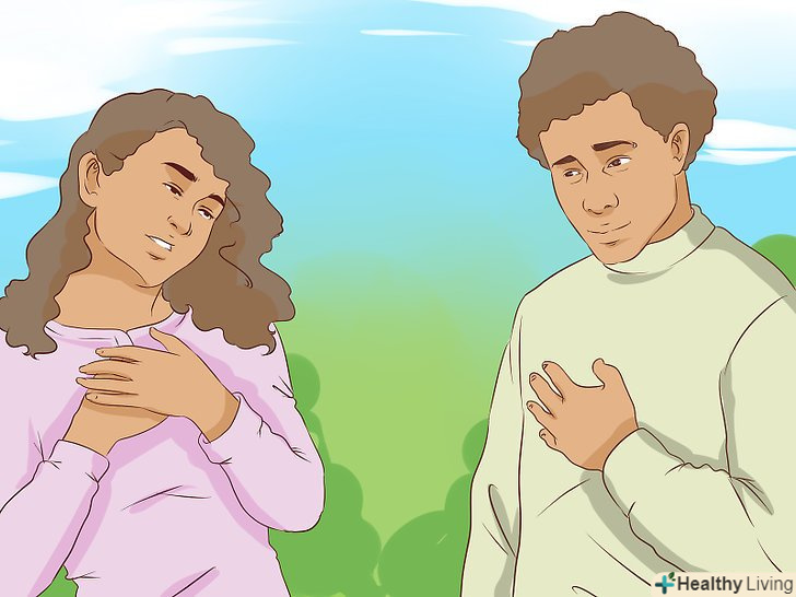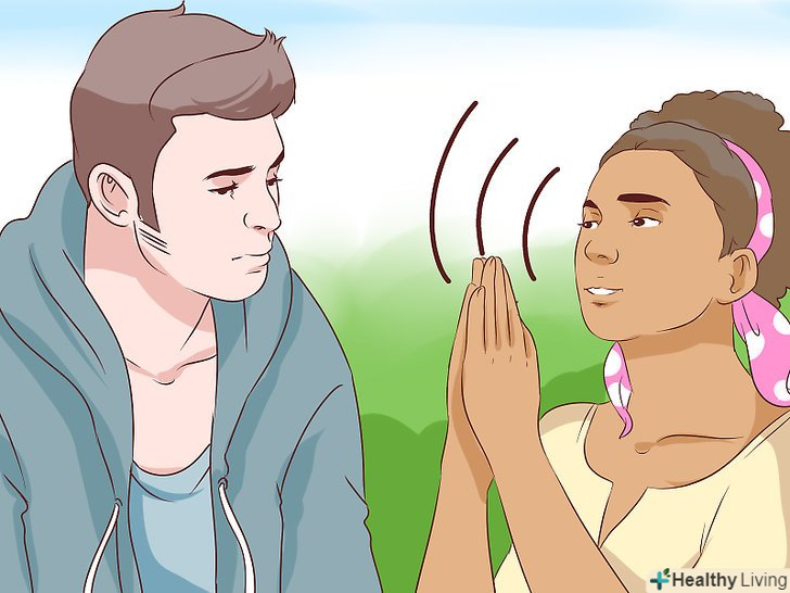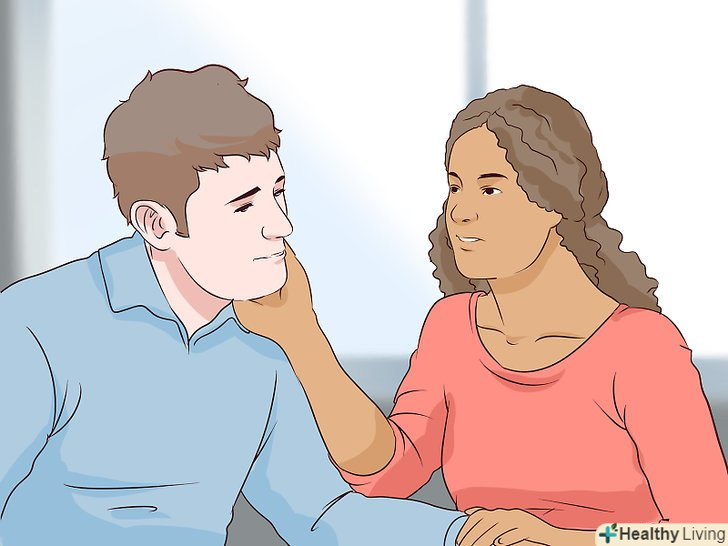 Використовуйте силу дотиків. вибачення в поєднанні з рукостисканням, поплескуванням по плечу або з подальшими обіймами, можливо, буде ще ефективніше. Дотики виражають близькість (Ви знаєте і розумієте людину) і щирість (ви дійсно маєте на увазі те, що говорите). [15]- Звичайно, покладайтеся на свою оцінку обстановки. Якщо ви дійсно заподіяли біль людині, можливо, він буде відсторонюватися від ваших дотиків. Не намагайтеся насильно викликати контакт, якщо хлопець не йде назустріч. Тим не менш, можливо, ви здивуєтеся, як часто навіть найстійкіші з хлопців потребують обіймів, коли їх почуття зачеплені.