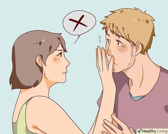 Відмова займатися сексом. якщо ваш хлопець наполягає, що вам вже пора переходити до інтимної близькості, а ви ще не готові до цього, то відмовляйте прямо: «ні». Якщо вважаєте за потрібне, то можете пояснити причини своєї відмови: ймовірність завагітніти, ваші моральні підвалини або той факт, що ви ще просто не готові. Важливо пояснити, що це ваше особисте рішення, яке ніяк не продиктовано зовнішністю вашого партнера. [18]- Не варто розраховувати, що ваш партнер тут же увійде в положення і припинить спроби. Говоріть гранично ясно.