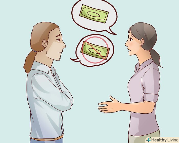 Відмова на прохання позичити грошей. позичання грошей друзям може поставити дружбу під загрозу. [12] якщо ваш друг буде довго тягнути з поверненням, то ви можете не наважуватися нагадати про це, а людина може порахувати, що це був подарунок, а не послугу. Якщо ви вважаєте, що ваша дружба або гаманець не витримають неповернення грошей, то постарайтеся відмовити одному якомога ввічливіше. При цьому намагайтеся бути максимально чесним.- Наприклад, можете сказати наступне: "Я знаю, що у тебе зараз туго з фінансами. Мені дуже дорога наша дружба, але друзі і позики грошей несумісні. Може, я можу допомогти тобі якось інакше?"або" у мене зараз немає вільних грошей. Я б і радий допомогти, але мені нічим».