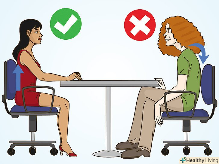 - Не схрещуйте ноги. Такий стан ніг може показати, що вам нудно і ваші думки зайняті чимось іншим. Крім того з часом такий стан ніг може сприяти розвитку болю в спині або утворення судинних зірочок. [13]