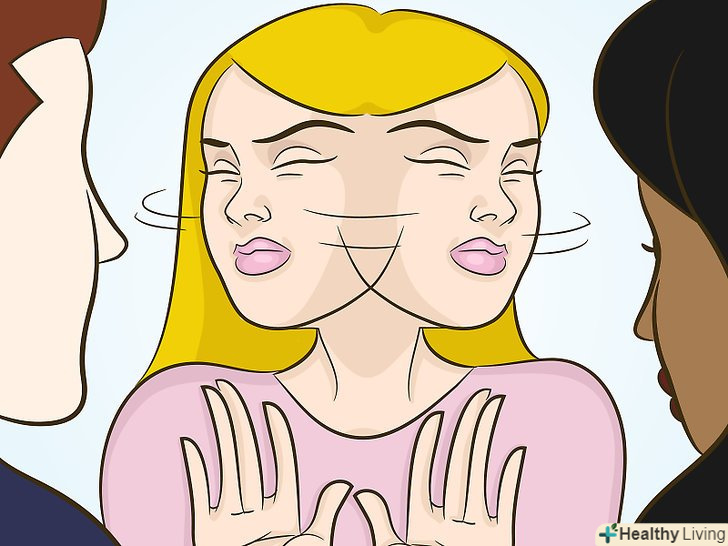 - Підкресліть свою відмову жестами і рухами тіла. Зберігайте зоровий контакт, Тримайте голову і спину прямо, розслабте обличчя і плечі. [26]