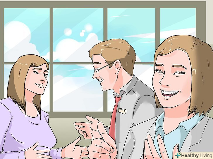 Розслабтеся! у стресових ситуаціях, пов'язаних із спілкуванням, це одна з найважчих завдань, але це і самий розумний вибір, який ви можете зробити. Коли ви розслабитеся, майже все у взаємодіях з іншими людьми буде вам легше даватися: покращиться ваше почуття гумору, теми для розмов будуть виникати самі собою, ви будете менше боятися, звертаючись до людей, і так далі. Якщо у вас є особливі прийоми або звички, що дозволяють розслабитися, то їх використання перед ситуаціями, пов'язаними зі спілкуванням, надасть вам неоціненну послугу.- Всі люди різні, але є універсальні прийоми, які допомагають розслабитися більшості. Наприклад, багатьом легше розслабитися після декількох хвилин медитації. Іншим допомагають фізичні вправи або спокійна музика.