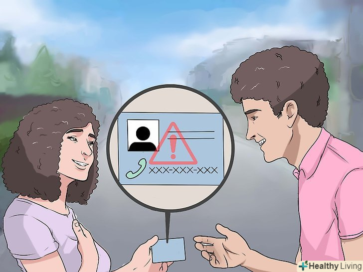Залиште хлопцеві фальшивий номер. це трохи ризиковано, тому що хлопці часто відразу ж перевіряють правильність номера, намагаючись вам зателефонувати, як то кажуть, «не відходячи від каси». Тим не менш, це все ще непоганий спосіб відв'язатися від хлопця, який просить у вас номер телефону. [5]- Відразу важливо переконатися в тому, що ви залишаєте хлопцеві випадковий номер, а не номер вашого знайомого. Більшість номерів телефону можна знайти в базі в Інтернеті і перевірити, чи зареєстровані вони під чиєсь ім'я. Ви ж не хочете підставити незнайомої людини.