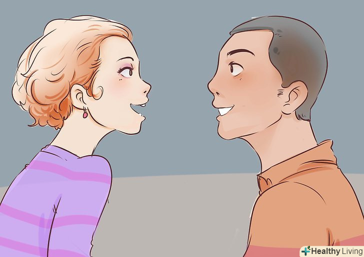 Посміхайтеся. тепла посмішка передається не тільки ротом, а й очима. Якщо хто-небудь зустріне ваш погляд здалеку, посміхніться. Щира посмішка може продемонструвати, що ви доброзичливі і відкриті до нових знайомств. Утримайте погляд іншої людини на кілька миттєвостей, а потім посміхніться. [6]