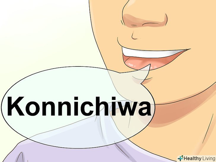 Привітайтеся, просто сказавши "Konnichiwa". це звичайне, зрозуміле привітання, яке означає "Здрастуйте / привіт"або" доброго дня". Це привітання "на будь-який випадок", яке підходить як незнайомцям, так і друзям, а також є найнадійнішим способом звернення. [9]- Якщо ви сумніваєтеся, використовуйте цю фразу. Вона легко вимовляється і застосовна де завгодно, і з ким завгодно.