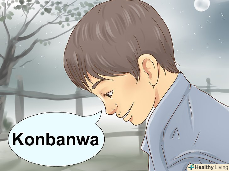 Ввечері поклоніться з фразою"Konbanwa". поряд з кроком, згаданим вище, привітайте людину ввечері фразою "Konbanwa". Хоча це може здатися зайвим, формальний характер японської культури заохочує офіційне привітання в будь-який час доби. Не бійтеся "перестаратися", коли справа стосується привітання оточуючих.