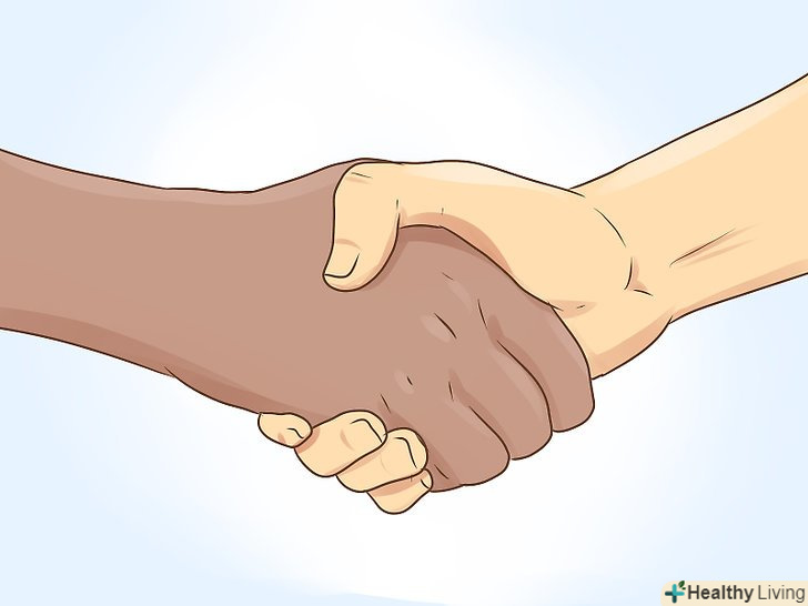 Потисніть руки. у неформальній обстановці не соромтеся запропонувати рукостискання, але не стискайте руку занадто міцно або інтенсивно. Краще розслабте руки. [7]- Крім того, в Японії рукостискання не тривають так само довго, як, наприклад, в Європі або Сполучених Штатах. Замість того, щоб міцно тиснути руку протягом десяти секунд або довше, обхопіть її максимум на п'ять секунд, а потім відпустіть.