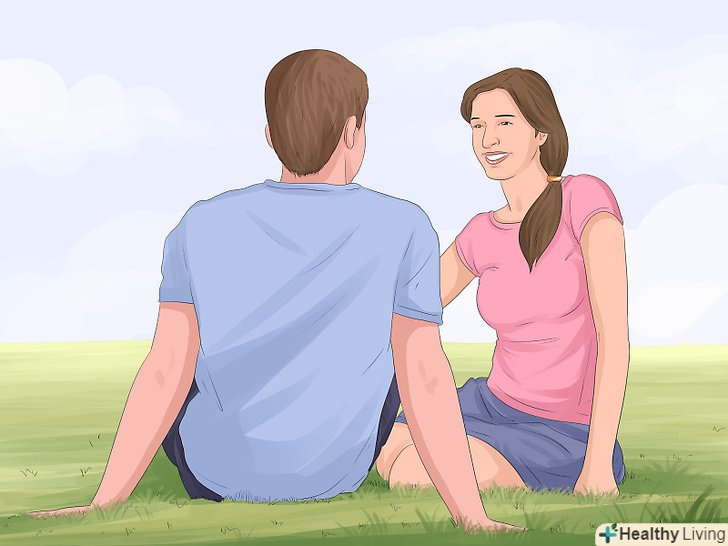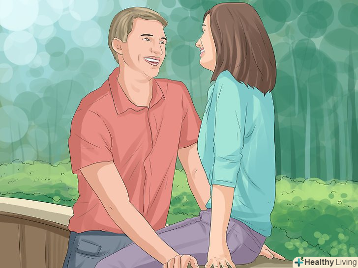 - Дивіться хлопцеві в очі і посміхайтеся. Можливо, ви збентежитеся або злякаєтеся, через що захочете відвести погляд. Боріться зі своєю сором'язливістю і дивіться хлопцеві прямо в очі, продовжуючи широко і щиро посміхатися, щоб він знав, що ви відчуваєте ті ж почуття, що і він. [2]