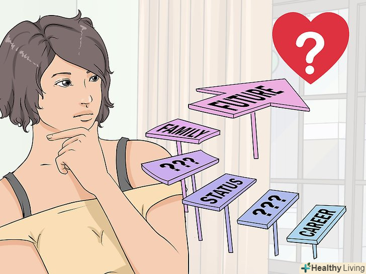 Не питайте, до чого ведуть ці відносини. є обставини, через які ваш партнер не йде від своєї благовірної. На це може бути безліч причин. Наприклад, у них створився такий уклад життя, з якого складно вибратися. Або він хоче будувати майбутнє зі своєю половинкою, а ви потрібні йому тільки для того, щоб добре провести час і розслабитися. Не питайте, до чого ведуть ваші відносини. Відповідь може вас розчарувати. [3]- Якщо ви хочете бути у відносинах, у яких є майбутнє, подумайте про те, щоб знайти людину, яка буде ставити вас на перше місце.