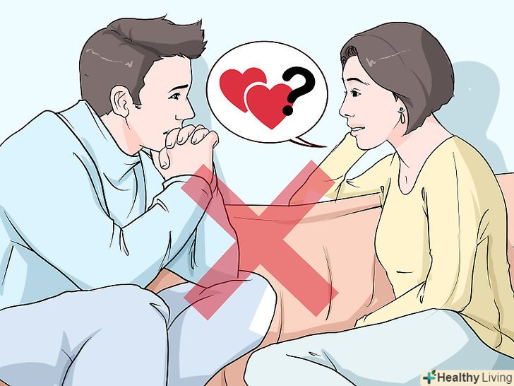 Захищайтеся, коли справа доходить до сексу. швидше за все, у вашого партнера все ще є сексуальні стосунки зі своєю половинкою. І вони можуть як оберігатися, так і не робити цього. Якщо ж Ви вступаєте в інтимний зв'язок з цією людиною, подбайте про безпеку. Використовуйте контрацептиви, які найкраще вам підходять. Негайно пройдіть обстеження, якщо побоюєтеся, що ваше сексуальне здоров'я знаходиться під загрозою. [10]- Запитайте партнера, чи були у нього ЗПСШ. Це делікатна тема для розмови, але, тим не менш, дуже важлива. Уточніть, чи перевірявся він коли-небудь на наявність захворювань, що передаються статевим шляхом. Якщо він відповість негативно, поцікавтеся, чи готовий він здати аналізи. Можете запропонувати зробити це разом.